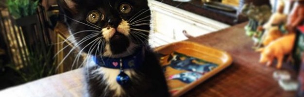 看板猫のトキオ。飼い主の天然パーマを見つめるの図#cat #猫部 #グリーングリーン #看板猫