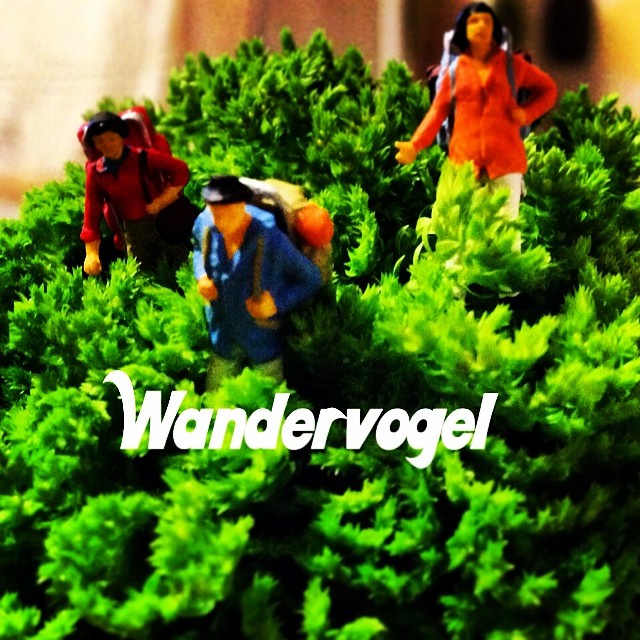 Home » セネギネラの中を歩くの図今回のフィギュアはドイツ製なのでドイツ語。Hikingでも良かったけどWandervogelを使いたかった。ワンダーフォーゲルとは青少年の野外活動を指すらしいです。直訳すると渡り鳥の意味。#green #plants #Wandervogel#figure
