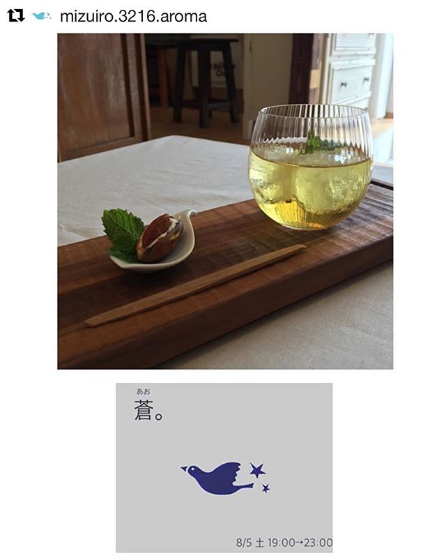 8月5日の八女の夜。#Repost @mizuiro.3216.aroma (@get_repost)・・・「蒼。」 あお大人の夜会。simpleに ただ simpleに。良いものだけを届けたいだけ。みずいろ。からは八女茶ペパーミントとデーツ&アーモンド.クリームチーズ。最高の 大人のハーモニー。数量限定にて。 ◆8/5 土曜日。19:00→23:00場所 みずいろ。〈八女市本町179〉#みずいろ。#蒼。#大人の夜会#夏#夜会#子供が寝たあとで。#しっぽり#小さく#シンプルに#はるのきハーブティー #八女茶ペパーミント#ichimaru #ドライフルーツ#デーツ#クリームチーズ#アーモンド#八女#久留米#筑後#柳川#福岡