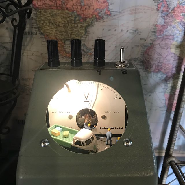 Home » F氏との合作。電圧計を魔改造!ムギ球を仕込んで暖かい灯のボックスを作ってもらったので、想像を膨らませて工場の作業現場を作ってみた。#ggプランツ研究所 #フィギュア#電圧計#vw#vwtype2 #工場#インダストリアル#つくってみた #フナケン#ムギ球#チイサキモノクラブ