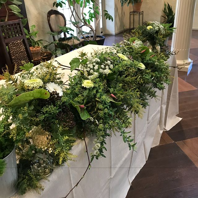 2月11日うきは市の結婚式場クウォーターにてブライダルフェアーの会場装花を担当させていただきました。今回はグリーンタップリのアレンジです。#ggプランツ研究所 #quarter#ブライダル #結婚式場 #うきは #flower #ブライダルフェアー #ミモザ #wedding #テーブル装花 #spring