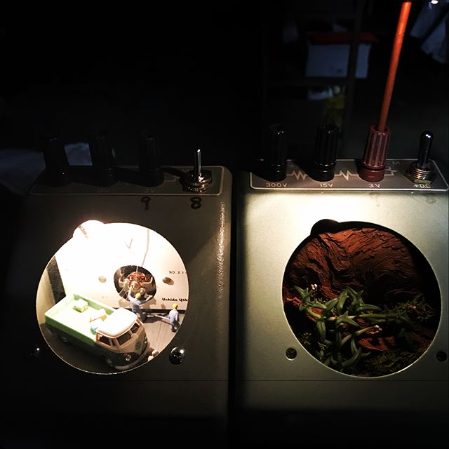 電圧計3部作の第2部 植物を育てるの巻中には流木と苔と多肉植物。ドルフィンネックレスを植え込んでみました。探査チームを送り込んでいます!最後画像はアニマル集会。#リーダーはライオン#ggプランツ研究所 #流木 #多肉植物 #電圧計 #フィギュア #ドルフィンネックレス #動物のフィギュア #vw
