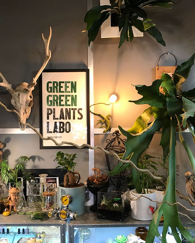 九州活版印刷所 製活版印刷ポスター@nineletterpress_liveprinting GREEN GREEN PLANTS LABOENDLESS CURIOUSITYとても素敵に仕上げていただきました!飾る場所を選びに選んでお気に入りの場所へ。時間差ですが、護国神社の蚤の市へ出店させていただいたご報告と御礼を少々。数々の素晴らしい出店店舗さんの中から足を止めていただき、商品をお買い上げいただきありがとうございました!そして運営スタッフの皆様お世話になりました。ありがとうございます。#活版印刷 #GGプランツ研究所 #護国神社 #コウモリランビフルカツム #ボトリウム #流木 #かすみ草のリース