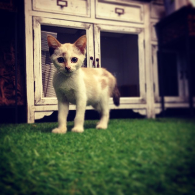 二週間ほど前に店先に箱に入れられて捨てられていた仔猫。怖い思いをしたようでかなりの人見知り。抱っこNGデイルの許しが出たのでGreen×2の仲間入り。#cat #仔猫 greengreen 2014年8月27日 Add Comment