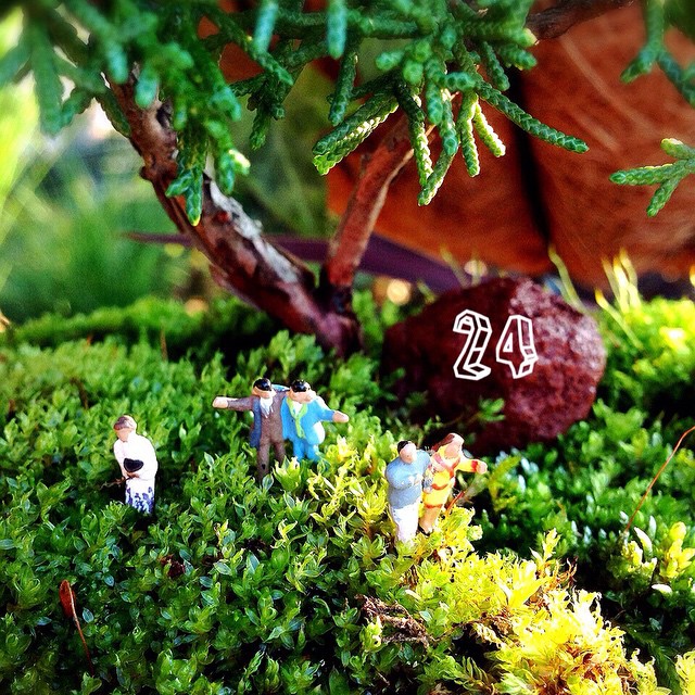本日24日はシンパクのミニ盆。忘年会などの季節。そんな風景を作ってみました。#bonsai #日めくり #moss