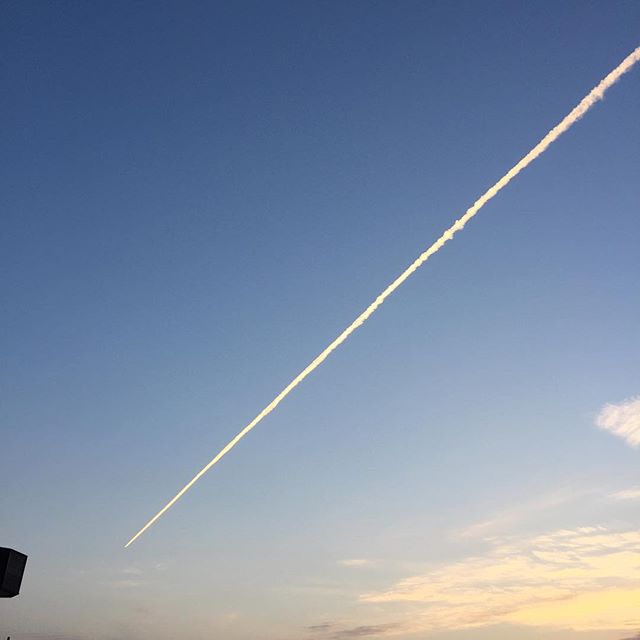 朝焼けにズバーッと飛行機雲!#雲 #空
