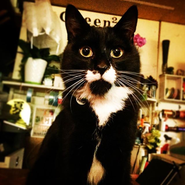 看板猫のトキオ口は開いていません、アゴが黒いのです。#猫 #cat #シロクロネコ