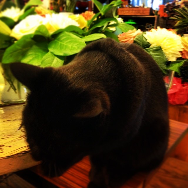 デイルが顔洗ってるから雨。#cat #flower #green #love#black