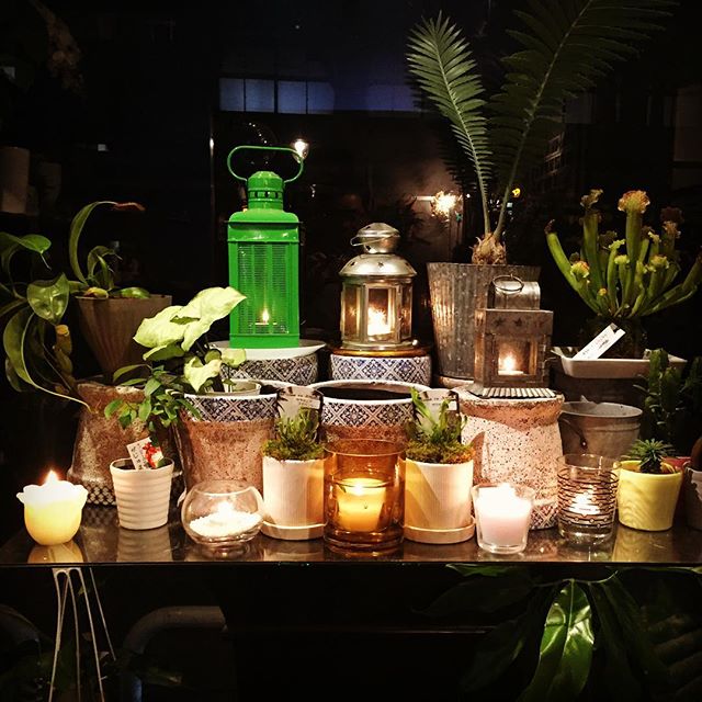 GGプランツ研究所こっそりキャンドルナイト。本日12月8日なのでキャンドル8ケ。年末には31ケになるのか︎#GGプランツ研究所 #plants #キャンドル #candle #night #食虫植物 #サラセニア #flowerbird #フラワーバード #花屋 #ユーホルビア