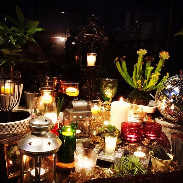 12月18日candle night 11日目キャンドル18ケ目です!キラキラが増えて来てます!ミラーボールまで登場です!#GGプランツ研究所 #candle #night #plants #botanical #日々の暮らしに #花屋 #flowerbird #サラセニア #flower #greengreen
