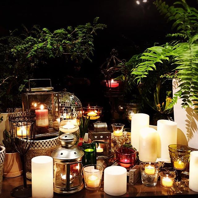 12月22日candle night 16日目キャンドル22個キャンドルの灯りに照らされる植物は良い感じです。でも火の用心!#GGプランツ研究所 #花屋 #flowerbird #plants #flower #キャンドル #candle #火の用心 #ソフォラ #日々の暮らし #ミラーボール #green #
